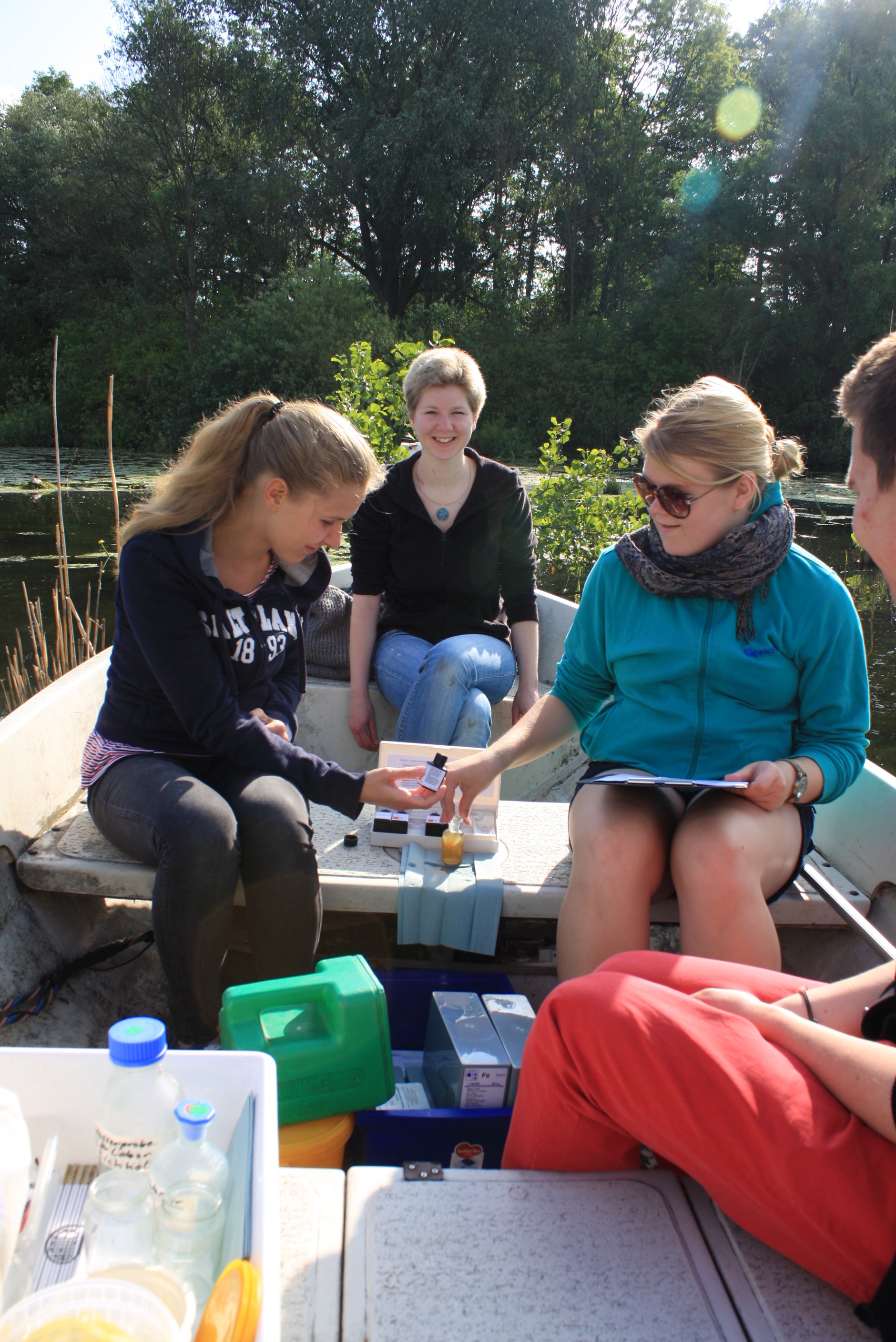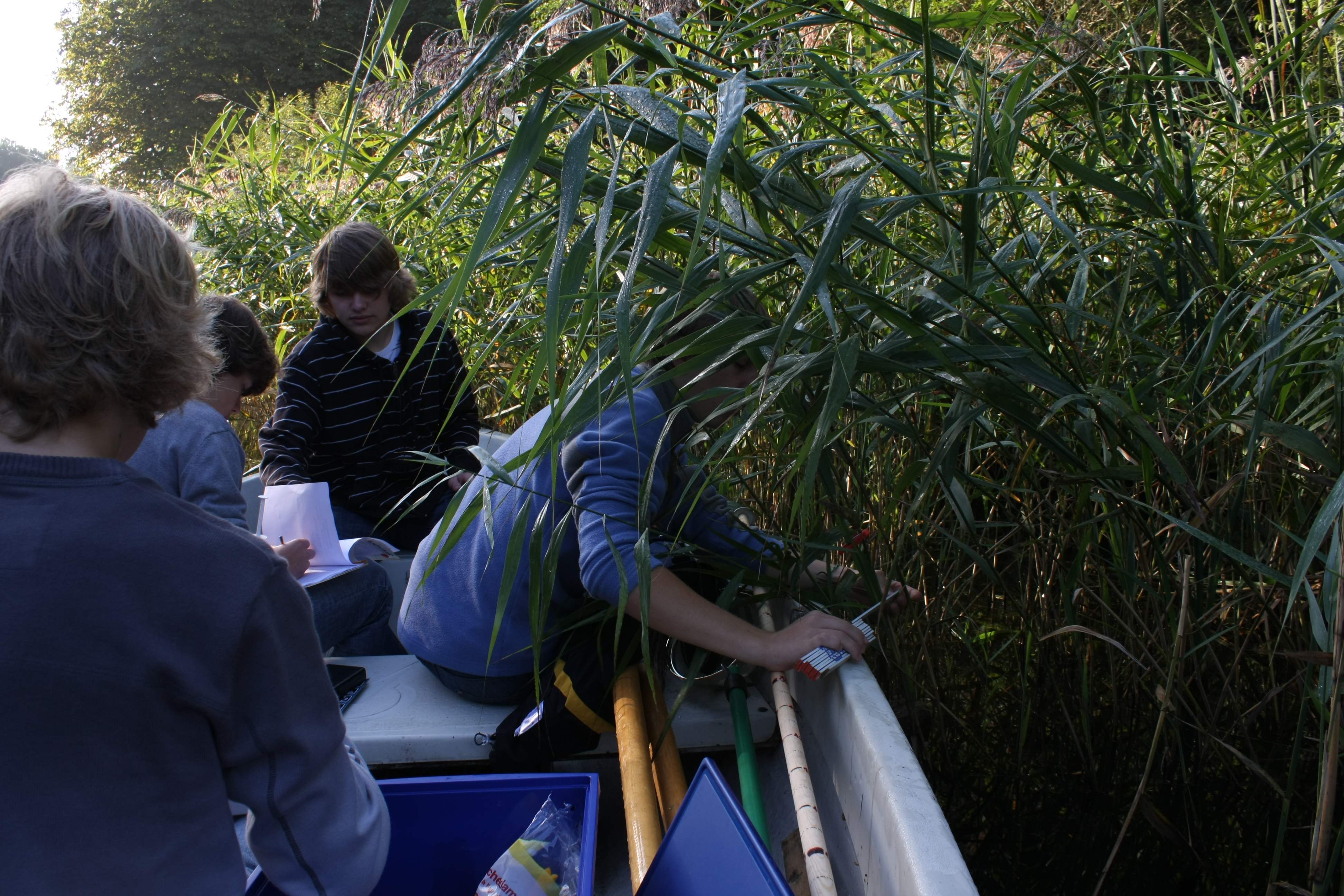 Schüler beim Schilfausmessen